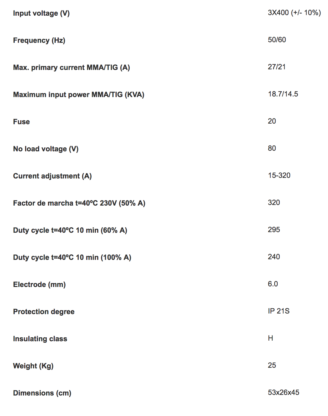 Three-phase inverter for MMA and TIG welding in direct current (DC). Dynamics functionality for constant thermal delivery and SPOT welding timer.