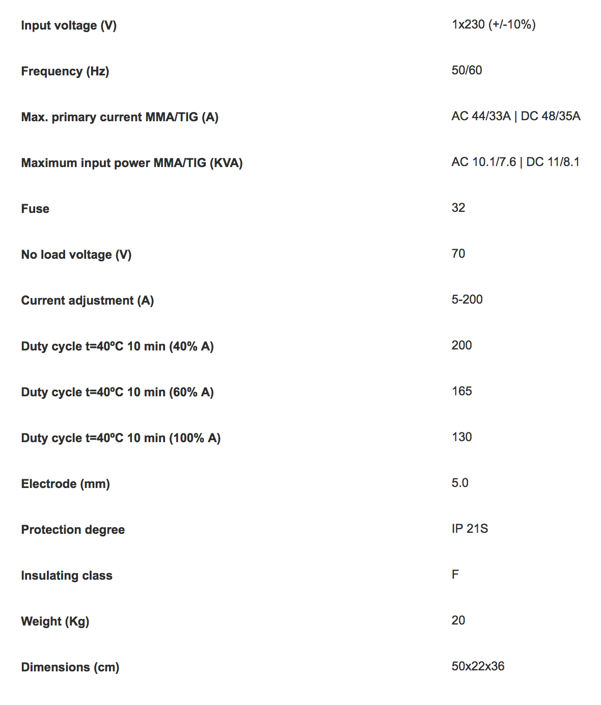 Single-phase inverter for MMA and TIG welding in direct current (DC) or alternating current (AC).