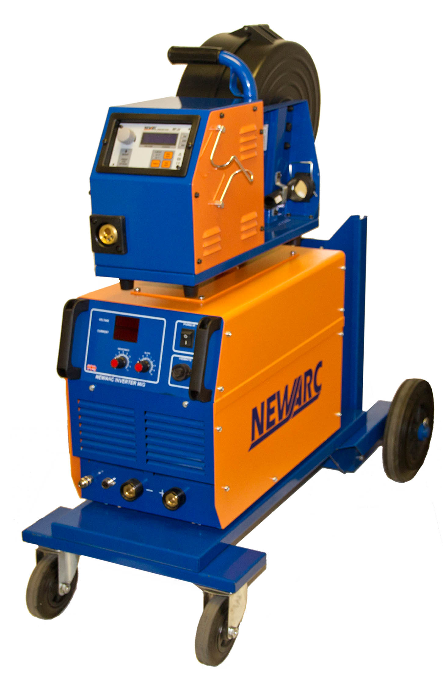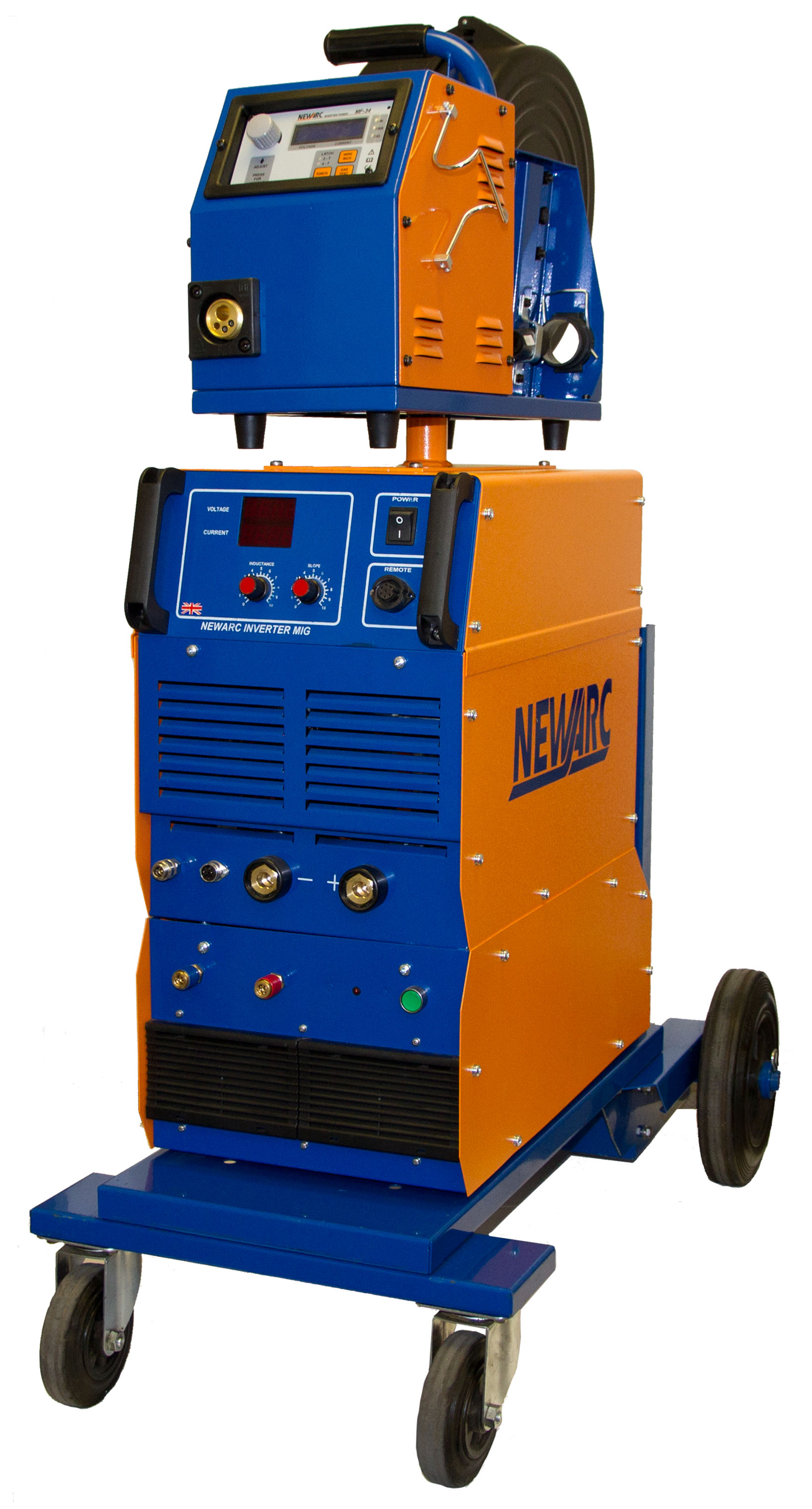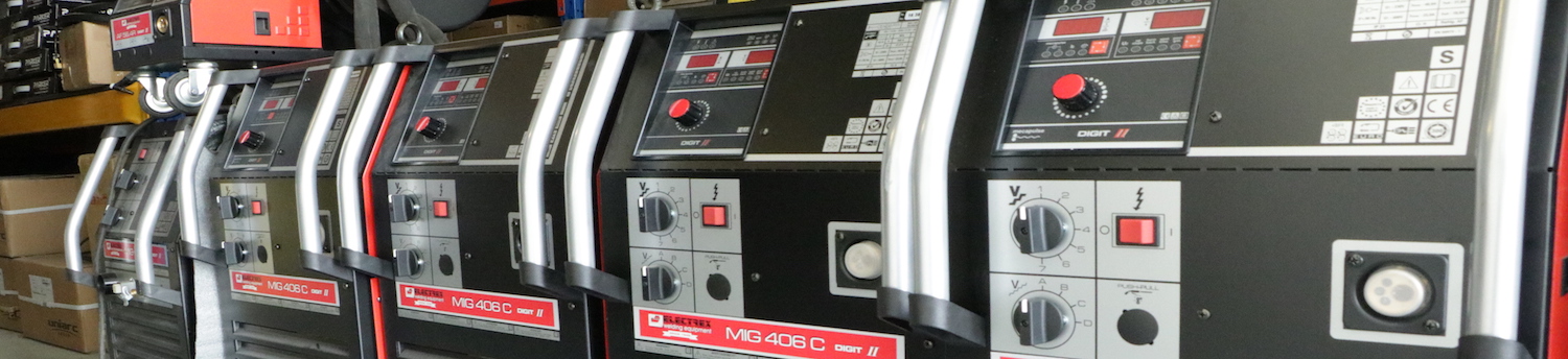 Three phased MIG/MAG welding machines, step controlled, with separated wire feeder. Primary and secondary parameters visible on 2 displays with weldin...