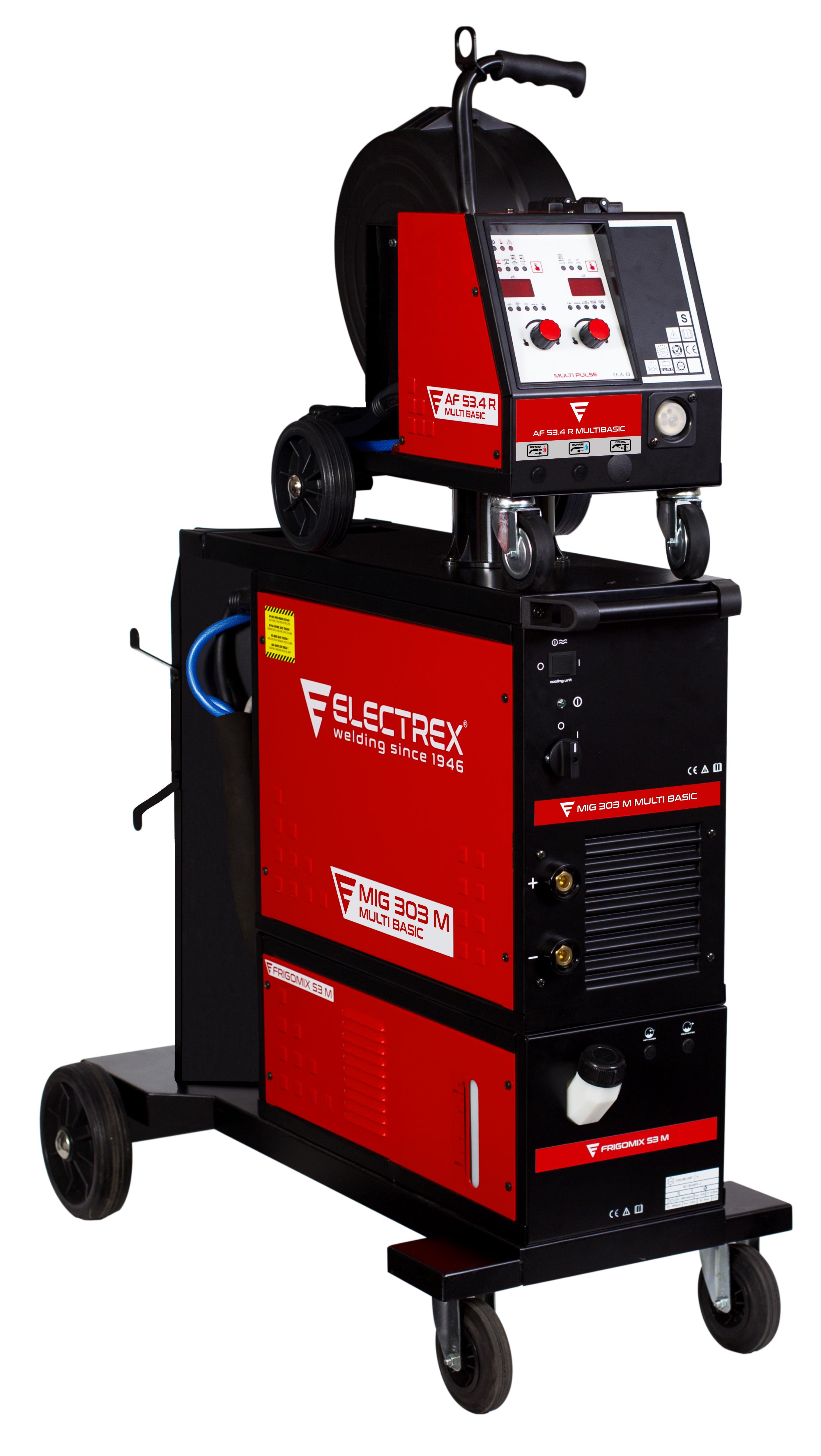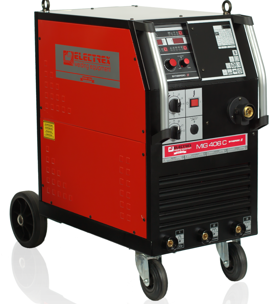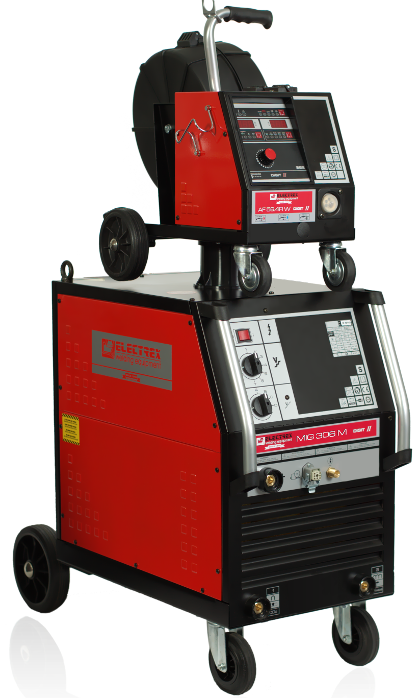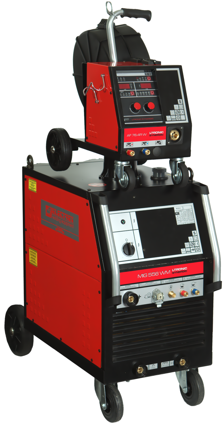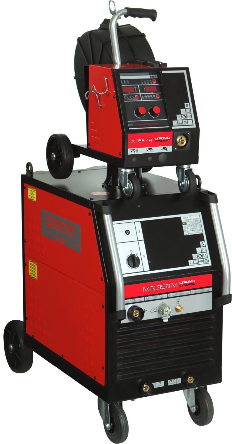 Three phase MIG/MAG semiautomatic welding machines with separate wire feeder and electronic power control. All welding parameters adjusted directly o...
