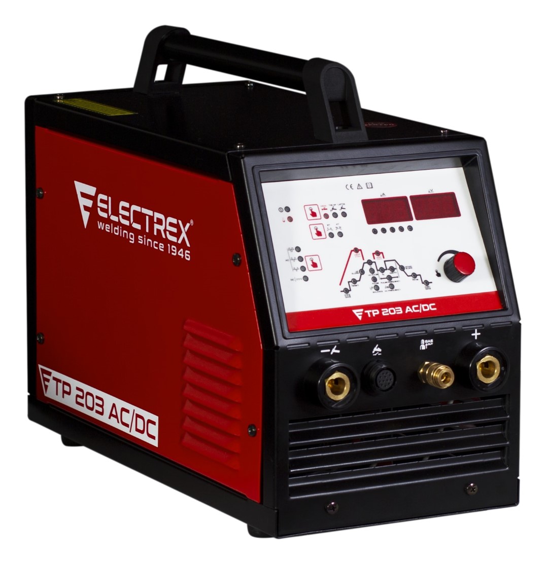 Three-phase inverter for MMA and TIG welding in direct current (DC) or alternating current (AC).